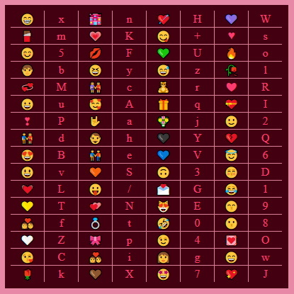 Finally, some kind soul on /r cryptography gave me the hint that tipped my brain into the right direction. I had actually awakened myself from slumber an hour early with an idea about subtracting the heartbreak emoji’s UTF-8 code from the UTF-8 code of the others, to see what I got. But with a groggy brain, I realized with dismay that I couldn’t subtract letters.